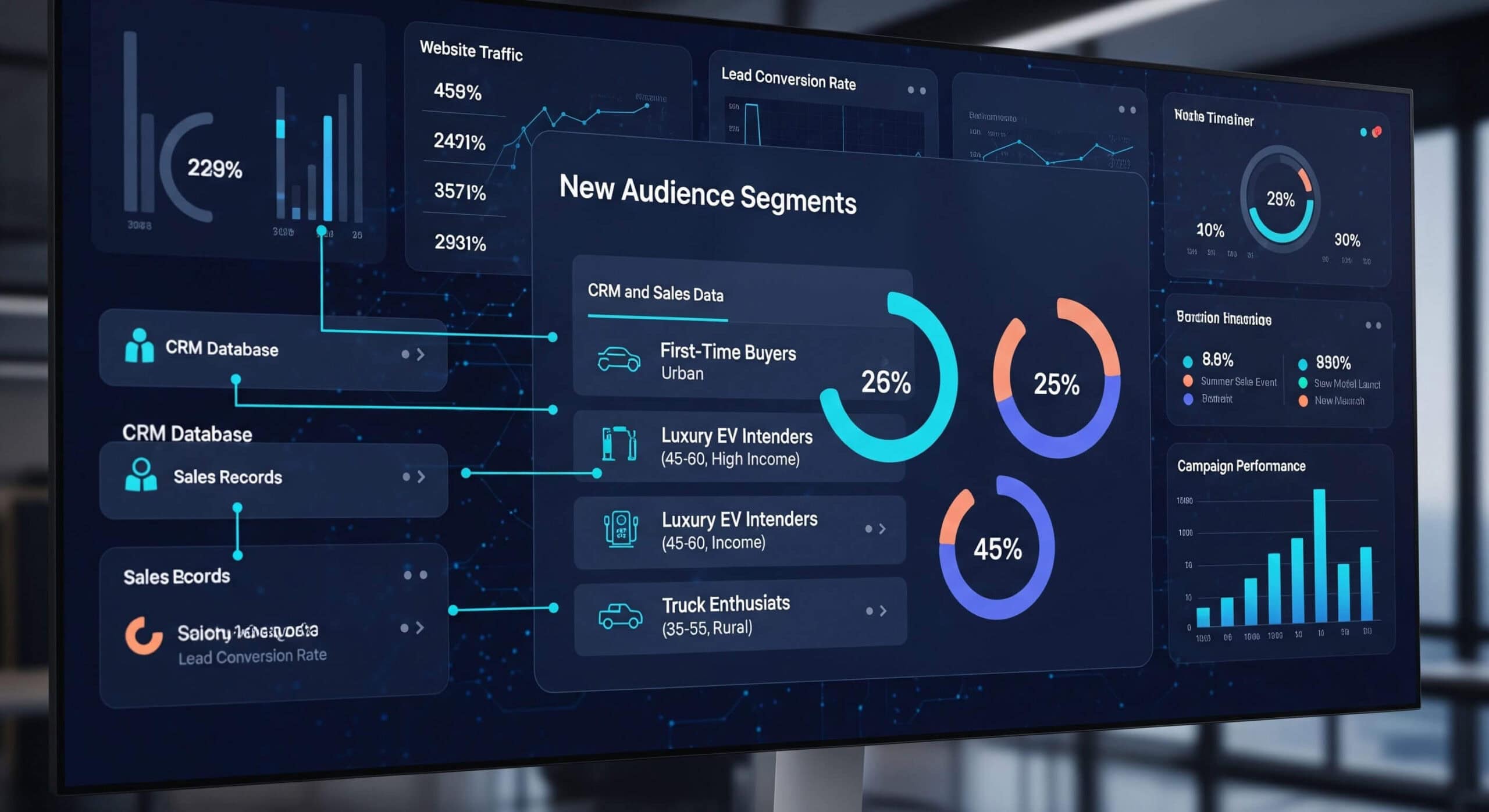 This AI continuously learns from CRM conversions, marketplace activity, and cross-channel engagements. When a campaign starts producing high-quality leads, the system automatically builds new segments that share similar digital DNA, income patterns, browsing velocity, search intent, even credit readiness. It then pushes these audiences across Google, Meta, TikTok, YouTube, and programmatic networks, multiplying reach without increasing waste.
